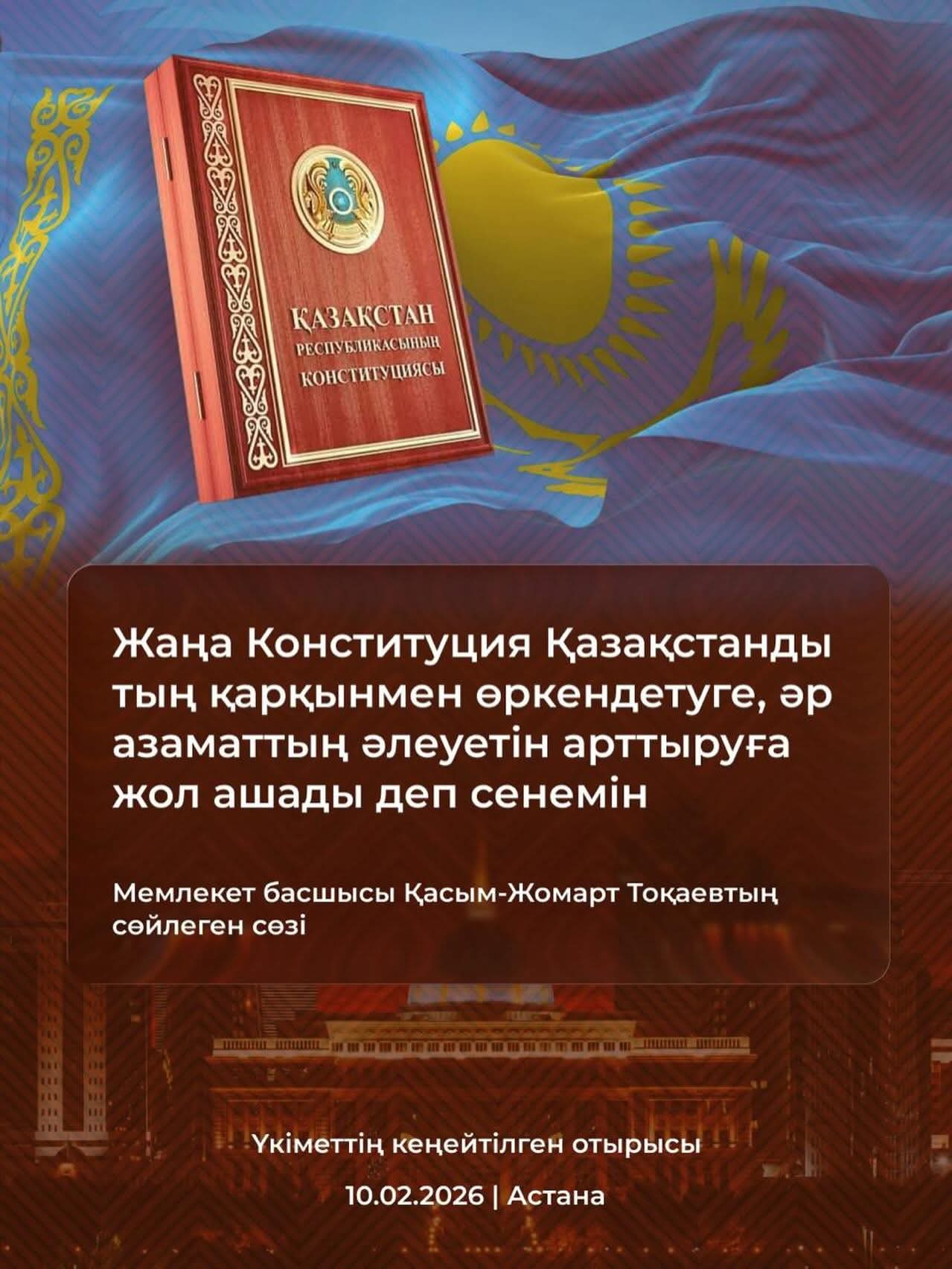 Жаңа Конституция – Қазақстан еліндегі саяси жаңғырудың, заң үстемдігінің және халықтың мемлекет басқару ісіне белсенді қатысуының негізгі кепілі болып табылады. Бұл құжат мемлекеттің даму бағытын айқындап қана қоймай, қоғам мен билік арасындағы байланысты нығайтады. Конституция арқылы елдегі барлық заңдар мен ережелер жүйеленіп, әділдік пен тәртіптің сақталуына жол ашылады. Заң үстемдігі орнаған жерде азаматтардың мемлекетке деген сенімі артып, елдің тұрақтылығы күшейеді.