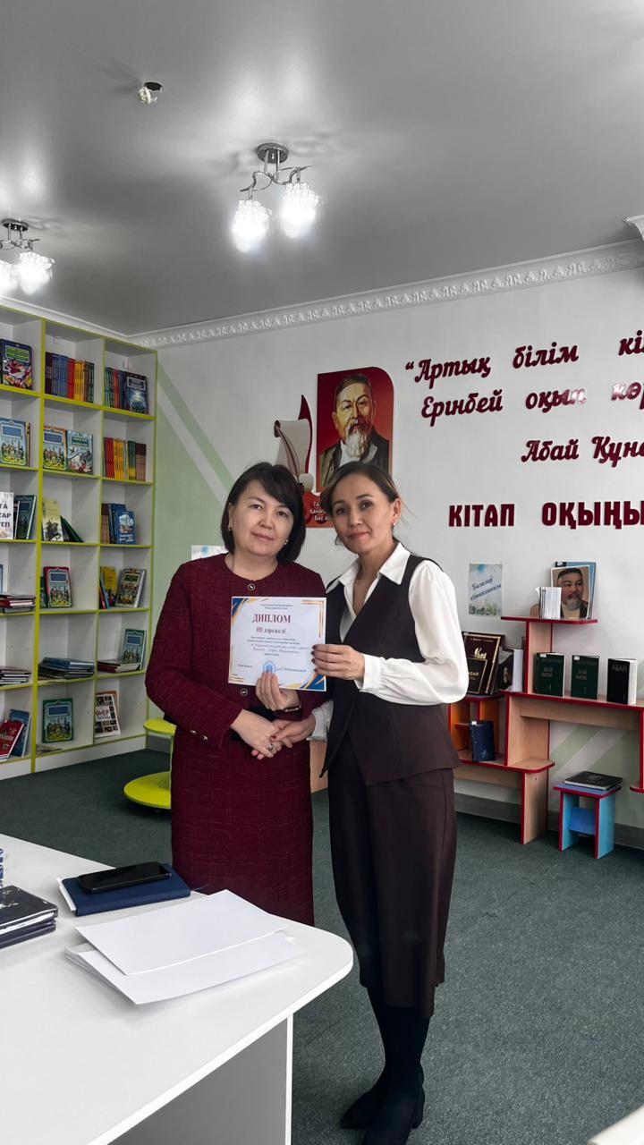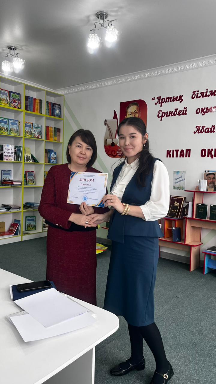 Үшінші орынды Ж.Мырзағалиев атындағы орта мектептің орыс тілі мен әдебиеті пәні мұғалімі Ақбөбек Каримова қанжығасына байлады.