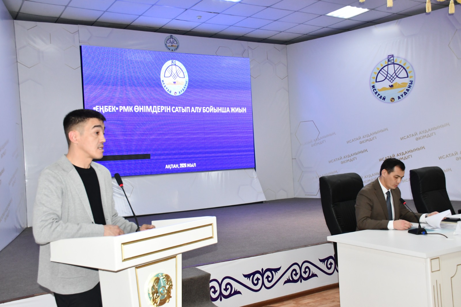 Осы бағыттағы нақты тетіктерді түсіндіру және жергілікті деңгейде тапсырыстарды орналастыру мүмкіндігін қарастыру мақсатында «Еңбек» РМК Батыс филиалының директоры Азамат Джалмағанбетов пен өндіріс шебері Ғаділбек Бекалиев ауданға арнайы іссапармен келді. Жиынға аудан әкімінің орынбасары Нұрберген Утегенов, ауыл әкімдері, бөлім және мекеме басшылары қатысты.