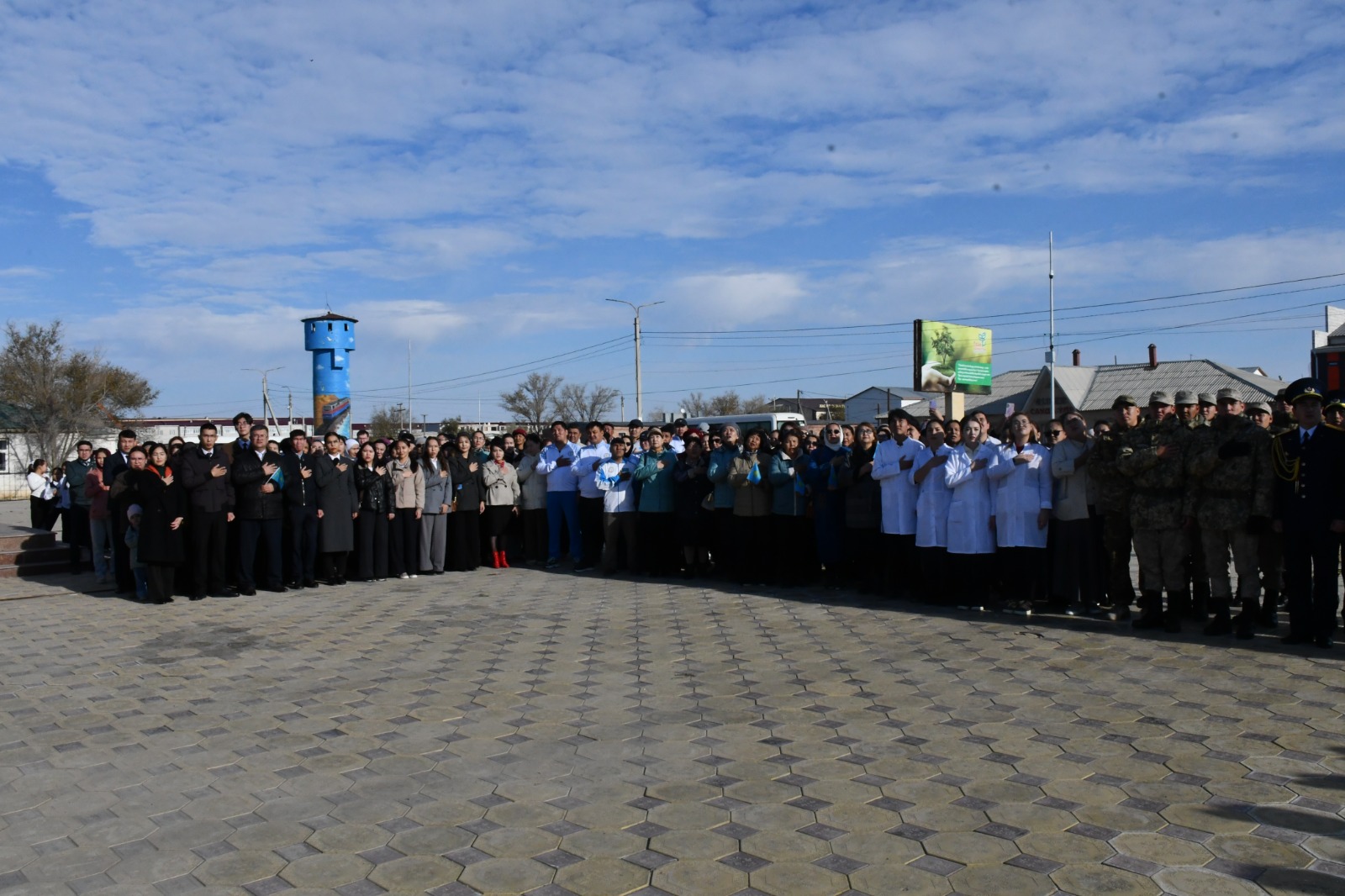 Алаңға жиналған мемлекеттік қызметшілер мен мұнай саласының мамандары, ұстаздар мен дәрігерлер, полиция және әскери қызметкерлер, ардагерлер мен жастар – барлығы да ортақ мерекенің шаттығын бөлісті.