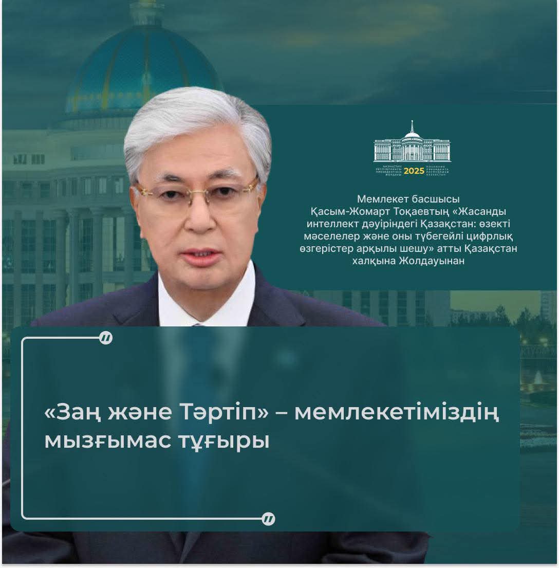 Президенттің Жолдауында айтылғандай, «Заң және тәртіп» – мемлекетіміздің маңызды тірегі. Қоғамның тұрақтылығы мен азаматтардың қауіпсіздігі заңның үстемдігі мен тәртіптің сақталуына тікелей байланысты.
