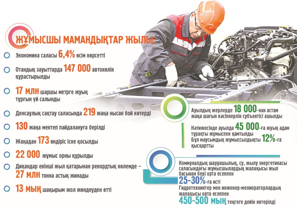 «Жұмысшы мамандықтары жылы» аясында негізінен қол күшімен атқарылатын ауыл шаруашылығы мен өндіріс секторлары кең ауқымды мемлекеттік қолдауға ие болды. Соның арқасында саладағы кадр тапшылығын жою, еңбек өнімділігін арттыруға қатысты нақты нәтижелерге қол жеткізілді.