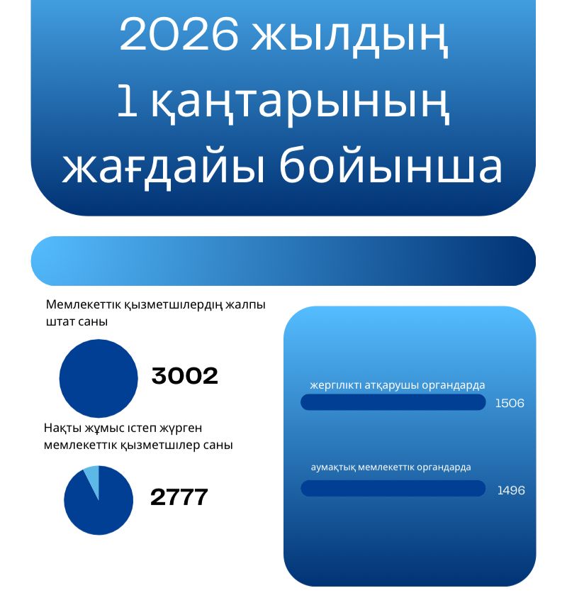 Өткен 2025 жылдың қорытындысы бойынша жергілікті атқарушы органдарда 7,5 пайыз бос орын тіркелген. Бұл жағдай кадрлық процестерді жедел әрі тиімді басқарудың, сондай-ақ баламалы заңды тетіктерді қолданудың өзектілігін көрсетеді.