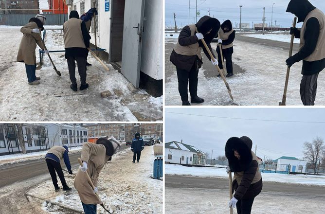 Кенттің адам көп жүретін аумақтарын қардан тазалау жұмыстарын жүйелі түрде жүргізіп, тұрғындардың қауіпсіз әрі еркін жүріп-тұруына жағдай жасады.